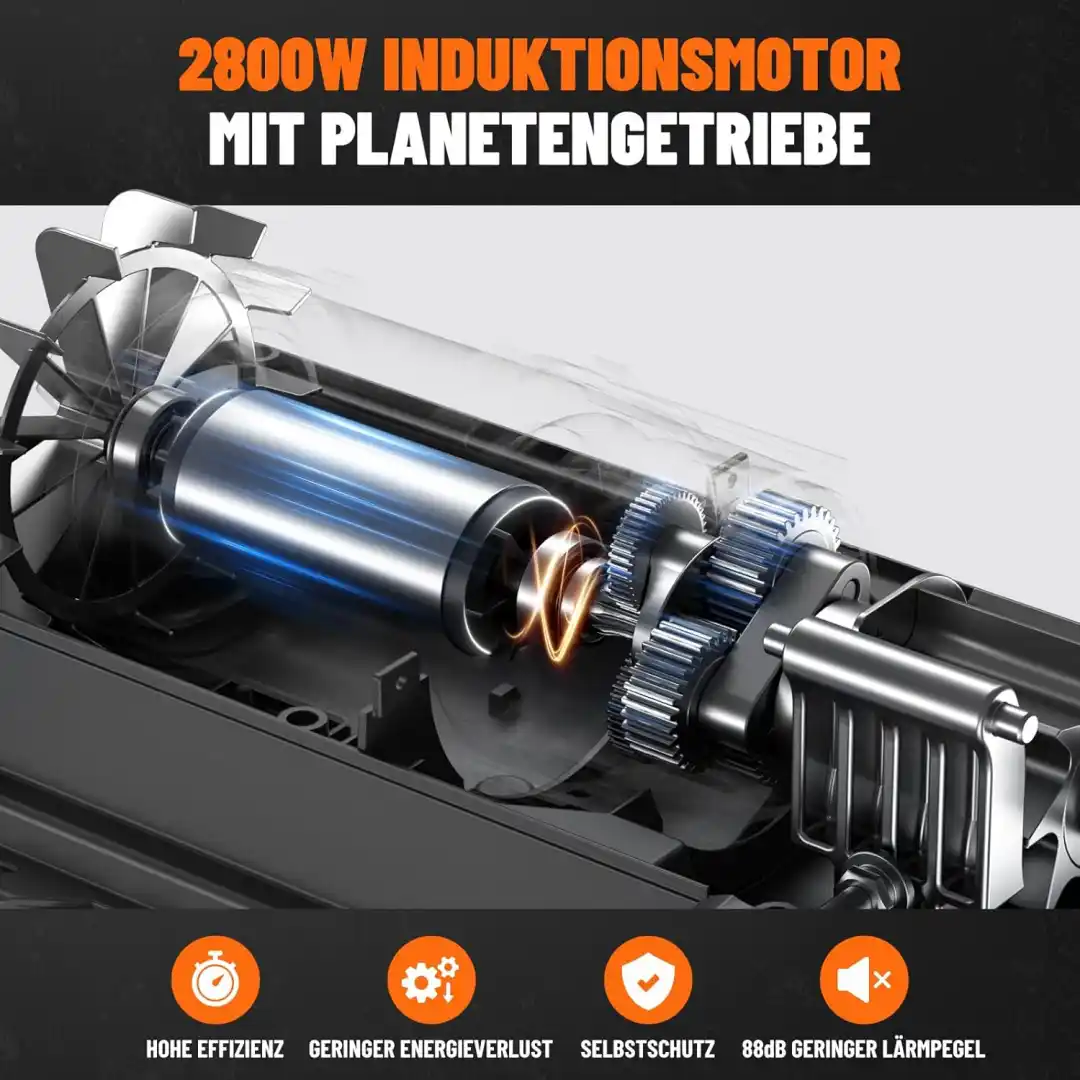 El motor sin escobillas no tiene piezas de fricción que se desgasten con el uso. Esto se traduce en mayor vida útil del motor, menos calor generado en sesiones largas y mayor eficiencia eléctrica. Es la misma tecnología que usan las herramientas profesionales de marcas premium, aplicada aquí a una trituradora de jardín.